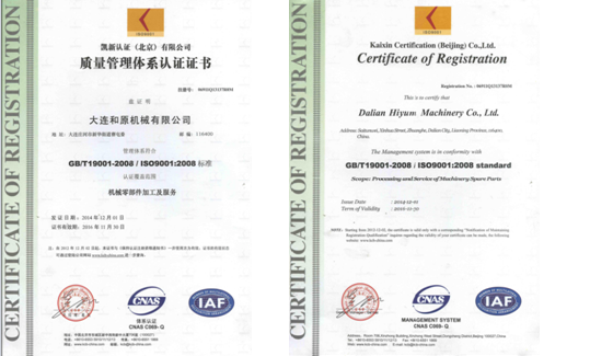 大连和原机械通过ISO9001:2008质量体系认证。